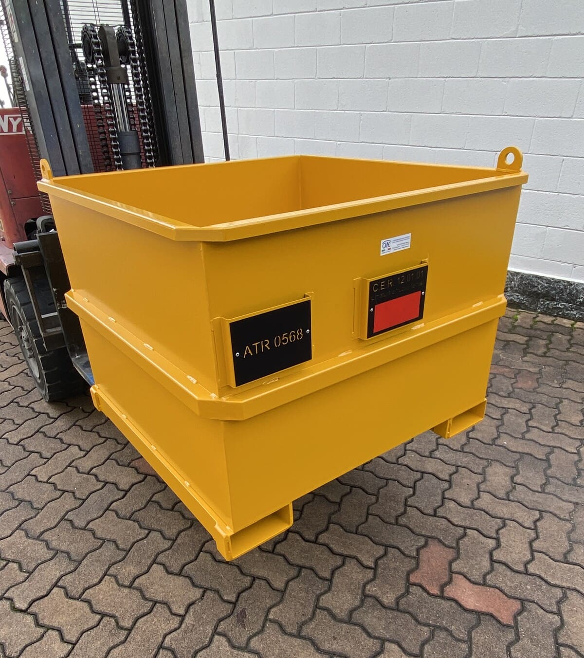 A fundamental feature of tipping industrial bins is the possibility of automatic tipping. Thanks to a controlled tipping mechanism, the operator can empty the container’s contents without having to dismount from the forklift, improving the safety and efficiency of the process.